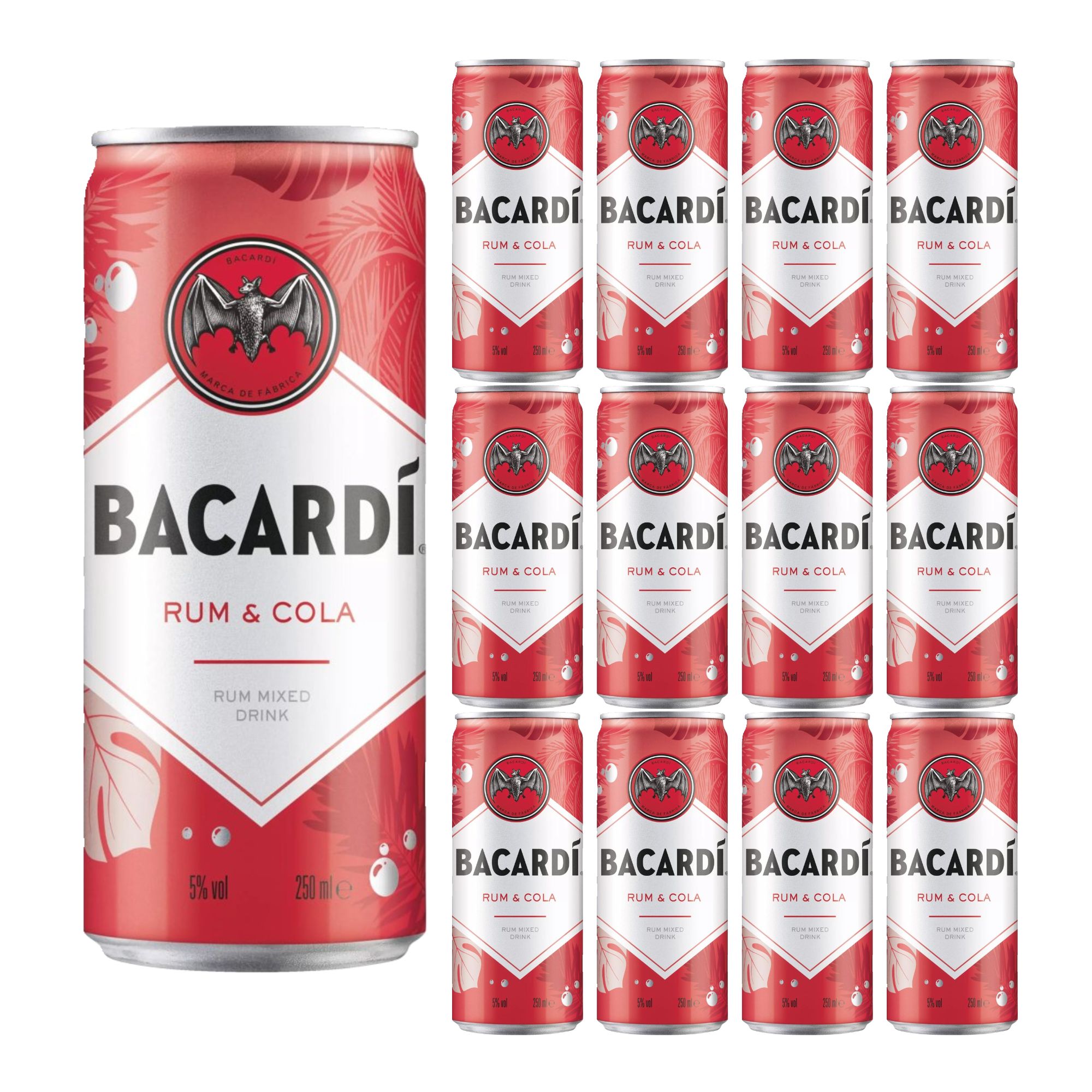 A ready-to-drink cocktail blending BACARDÍ white rum with cola, offering a sweet, rich flavor with notes of vanilla