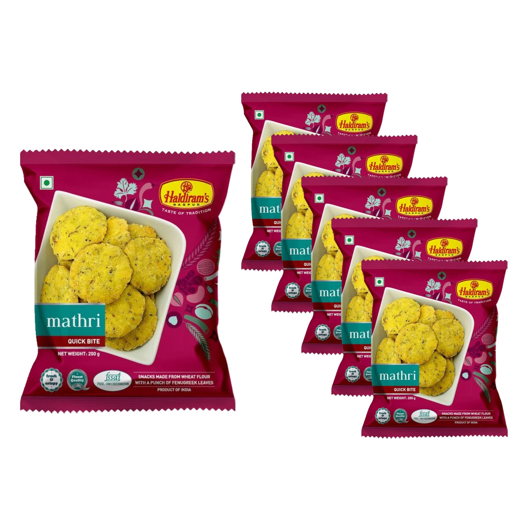 Crispy and flavorful Haldirams Mathri, 200g each, pack of 5 — perfect savory snacks for any time.