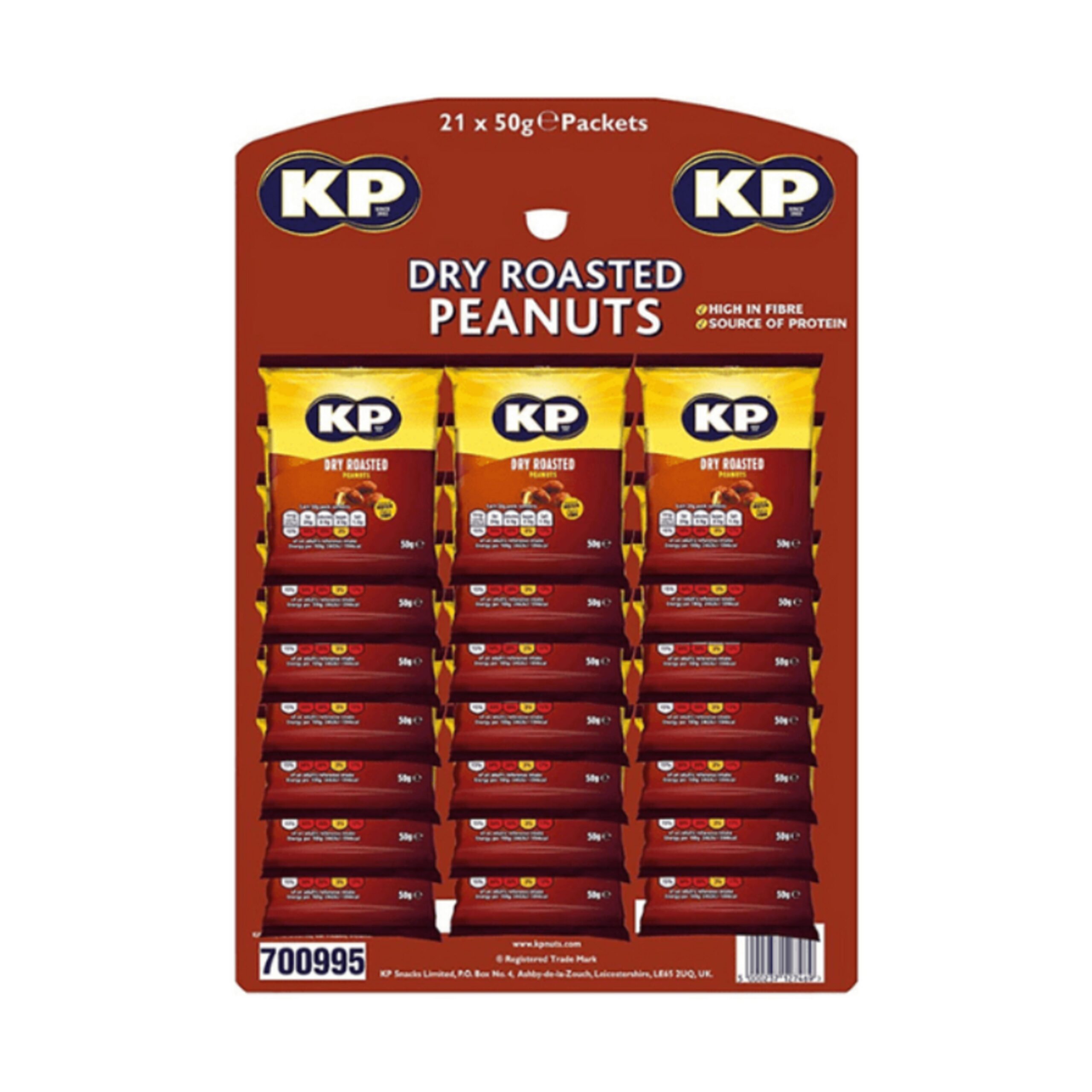 KP Dry Roasted Peanuts (Pubcard) 50g x 21 ? Crunchy, flavour-packed peanuts roasted to perfection. Convenient pubcard packs, ideal for sharing, events, or snacking anytime.