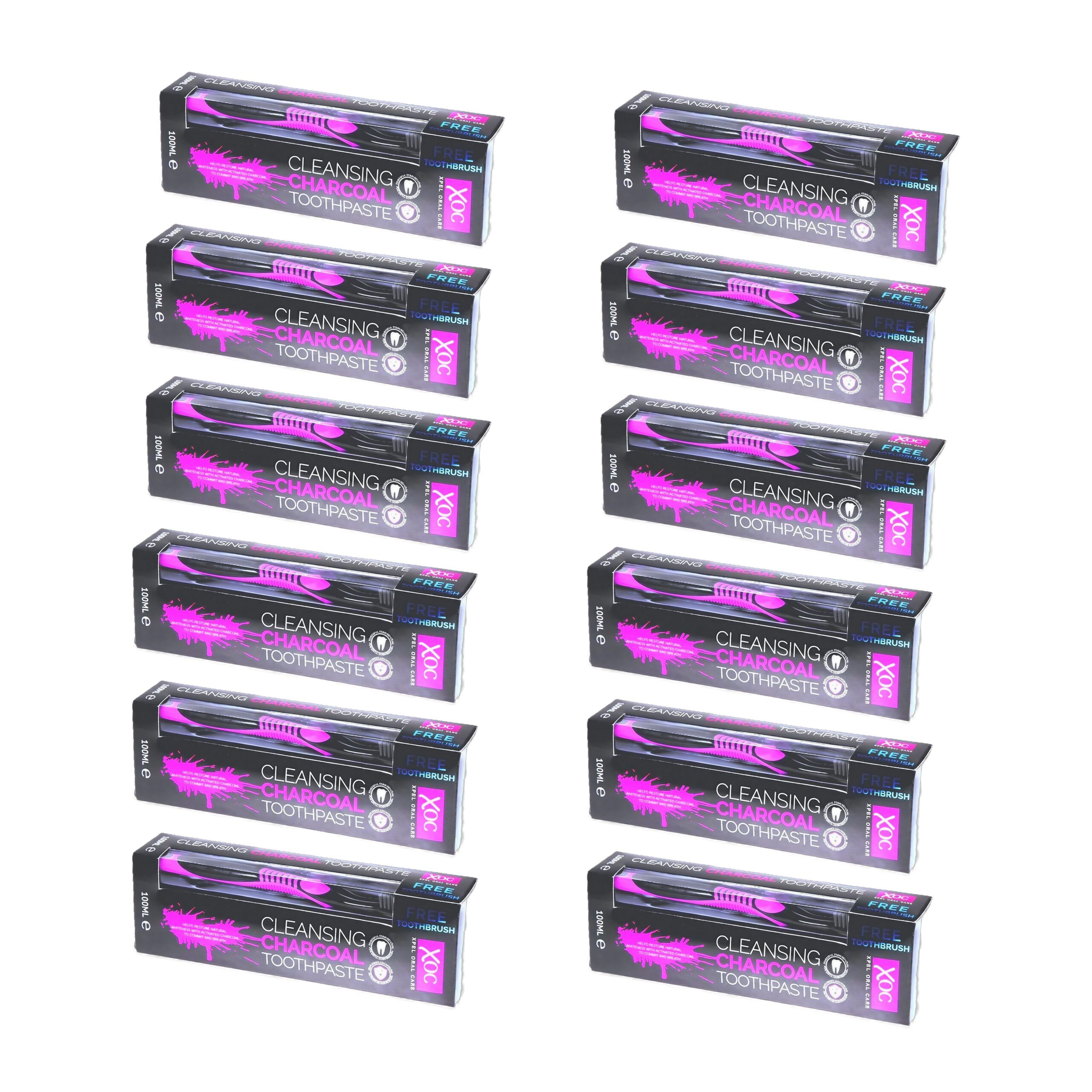 XOC Charcoal Toothpaste (12 x 100ml) offers deep cleaning and whitening with natural activated charcoal. Removes stains, freshens breath, and supports healthy gums for a brighter smile.